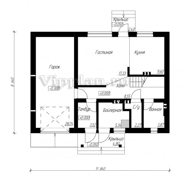 | Размеры дома: | 8.64м×11.84м |